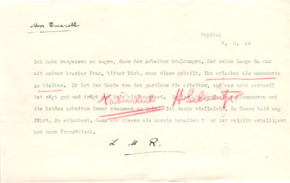 | 30 | | Brief von Lilian Russell an Albert SchweitzerBitte, einen guten Arbeiter behalten zu dürfen - mit rot darüber geschriebene Antwort "Natürlich" und Unterschrift Schweitzers. | Russell, Lilian: Hôpital du Dr. Albert Schweitzer Lambaréné [Lambarene, Gabun] | Schweitzer, Dr. Albert: Hôpital du Dr. Albert Schweitzer Lambaréné [Lambarene, Gabun] | 07.02.1934 | 2 | M001-A262-Z001-H001 | |
