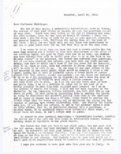 | 214 | | Brief von Everett Skillings an Albert SchweitzerSchweitzers Brief von der Rückreise nach Lambarene habe ihn am 29.12.1952 erreicht; für seine Arbeit in der Schweitzer-Fellowship, werde er nun einen jüngeren Nachfolger haben, doch er werde ihn unterstützen, da der Wechsel noch nicht bekannt ist, erhalte er auch weiterhin noch Briefe von Schweitzer-Freunden; über einige Studenten, welche planen, Missionare zu werden; berichtet von seinen Kindern | Skillings, Everett: Middleburry College [Middlebury, Vereinigte Staaten von Amerika] | Schweitzer, Albert | 23.04.1952 | 1 | M001-A945-Z001-G002 |