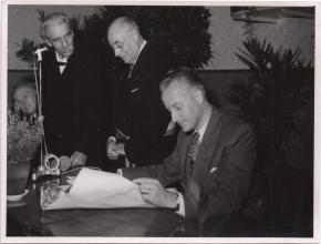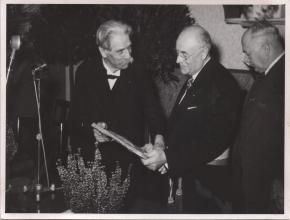 | 89 | | Ernennung Albert Schweitzers zum Ehrenbürger von Pfaffenhofen"Citoyen d'honneur de Pfaffenhoffen: Albert Schweitzer à Pfaffenhoffen. (1954.11.12)" | [Pfaffenhofen, Frankreich] | Silbergelatineabzug | 12.11.1954 | 1 | M001-P003-Z001-G934 |