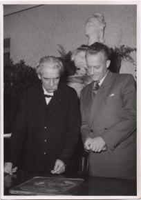 | 90 | | Ernennung Albert Schweitzers zum Ehrenbürger von Pfaffenhofen mit Frederic Gerst"Citoyen d'honneur de Pfaffenhoffen: Albert Schweitzer et Frédéric Gerst à Pfaffenhoffen. (1954.11.12)" | [Pfaffenhofen, Frankreich] | Silbergelatineabzug | 12.11.1954 | 1 | M001-P003-Z001-G935 |