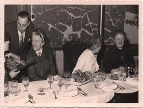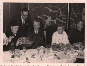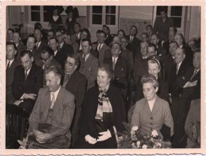 | 94 | | Ernennung Albert Schweitzers zum Ehrenbürger von Pfaffenhofen mit Marie Woytt-Secretan, Ernest Ohl, Hedda Flick, Ali Silver und Emmy Martin"Citoyen d'honneur de Pfaffenhoffen: Marie Woytt-Secretan; Ernest Ohl, Hedda Flick, Ali Silver et Emmy Martin à Pfaffenhoffen. (1954.11.12)" | [Pfaffenhofen, Frankreich] | Silbergelatineabzug | 12.11.1954 | 1 | M001-P003-Z001-G939 |