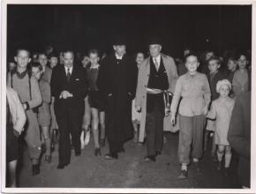 | 91 | | Ernennung Albert Schweitzers zum Ehrenbürger von Pfaffenhofen mit Frederic Gerst, Ernest Ohl und Ali Silver"Citoyen d'honneur de Pfaffenhoffen: Frédéric Gerst,Ernest Ohl, Ali Silver et Schweitzer, Albert à Pfaffenhoffen. (1954.11.12)" | [Pfaffenhofen, Frankreich] | Silbergelatineabzug | 12.11.1954 | 1 | M001-P003-Z001-G936 |