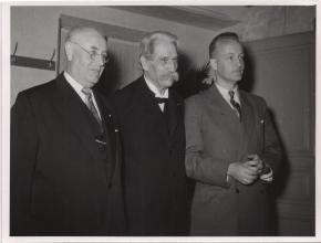 | 78 | | Ernennung Albert Schweitzers zum Ehrenbürger von Pfaffenhofen mit Ernest Biedermann und Frederic Gerst"Citoyen d'honneur de Pfaffenhoffen: Albert Schweitzer, Ernest Biedermann et Frédéric Gerst à Pfaffenhoffen. (1954.11.12)" | [Pfaffenhofen, Frankreich] | Silbergelatineabzug | 12.11.1954 | 1 | M001-P003-Z001-G923 |