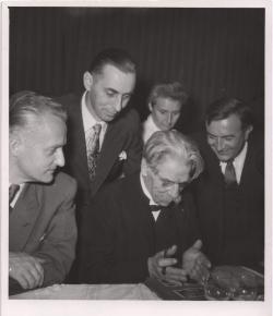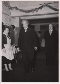 | 85 | | Ernennung Albert Schweitzers zum Ehrenbürger von Pfaffenhofen mit Ernest Biedermann und Frederic Gerst"Citoyen d'honneur de Pfaffenhoffen: Ernest Biedermann, Albert Schweitzer et Frédéric Gerst à Pfaffenhoffen." | [Pfaffenhofen, Frankreich] | Silbergelatineabzug | 12.11.1954 | 1 | M001-P003-Z001-G930 |