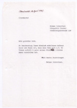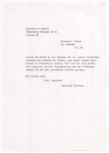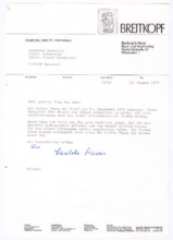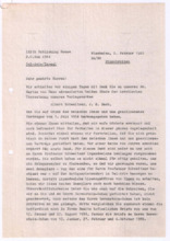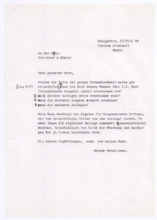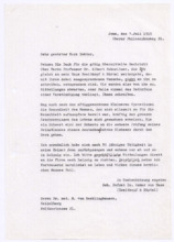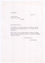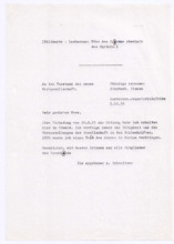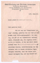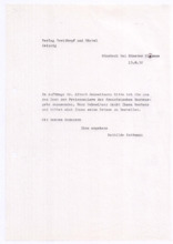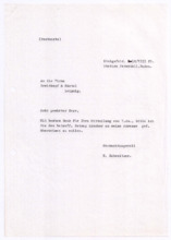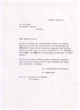 Archivalien Dokumente Suche starten Kataloge und Archive Katalog Katalog auswählen Archäologie und Anthropologie Medizin- und Pharmaziegeschichte Subkatalog Subkatalog auswählen Vor-, Ur- und Frühgeschichte einschl. Ägyptologie Missionare und ihre Helfer Archiv Archiv auswählen (A001) F.W. v. Bissing Archiv (M001) Albert Schweitzer Archiv Dokumentendetails Dokumentenart Dokumentenart auswählen Autographen & Manuskripte Bücher & Literatur Filme & Dokumentationen Kunst & Handwerk Musik & Tonaufnahmen Photos & Dias Memorabilia Zeitungen & Magazine Thema Thema auswählen Medizinische Korrespondenz Varia (Autographen & Magazine) Sprache Sprache auswählen Deutsch Französisch Organisation Organisation auswählen Hinzugefügt MonatJanuarFebruarMärzAprilMaiJuniJuliAugustSeptemberOktoberNovemberDezember Jahr20182019202020212022202320242025 Ortsfilter Kontinent Kontinent auswählen Afrika Antarktis Arktis Asien Australien Europa Mittelamerika Nordamerika Südamerika Land Land auswählen Bundesland Bundesland auswählen Landkreis Landkreis auswählen Gemeinde Gemeinde auswählen Ortschaft Ortschaft auswählen Gebiet Gebiet auswählen Personenfilter Person Person auswählen Absender Absender auswählen Empfänger Empfänger auswählen Stichwortfilter Zeitraum Von: Bis: Stichwortfilter leeren Alle Filter zurücksetzen Autographen [1127] Alle ABCDEFGHIJKLMNOPQRSTUVWXYZ Sortieren nach Letztem Eintrag Erstem Eintrag Alphabet A-Z Alphabet Z-A #VorschauTitelVerfasserEmpfängerDatumSeitenSignatur1127Brief der Schriftleitung von Reclams Universum an Albert SchweitzerBitte um einen Aufsatz über "Selbstbesinnung"[Leipzig, Deutschland]Schweitzer, Albert25.09.19232M001-A279-Z001-Z0041126Brief von Arnold J. Pomerans an Albert SchweitzerErkundigt sich, ob die englischen Übersetzungsrechte der "Briefe aus Lambarene" zu vergeben seien; die Übersetzung wäre für ihn ein "Liebeswerk", weshalb er sowohl seine Provision als auch seine Übersetzungsgebühren Schweitzers Krankenhaus zukommen lassen würdePomerans, Arnold J.: Arnold J. Pomerans - Reader & Translator[London, Großbritannien]Schweitzer, Albert[Gunsbach, Frankreich]01.03.19551M001-A279-Z001-Z0031125Abschrift einer Postkarte von Albert Schweitzer an den Vorstand der Neuen BachgesellschaftDie Einladung vom 30.08.1933 zur Sitzung habe er erhalten; er verfolge stets die Aktivitäten der Gesellschaft in den Zeitschriften; 1934 werde er wieder in Europa seinSchweitzer, Albert[Lambarene, Gabun]: Neue Bachgesellschaft[Leipzig, Deutschland]02.10.19331M001-A274-Z001-S0011124Abschrift eines Briefes von Heinrich von Recklinghausen an den Breitkopf & Härtel VerlagDirekt nach dem Schreiben des Verlags vom 22.08.1919 habe er sich mit Frau Fischer vor Ort in Verbindung gesetzt, welche Mittel und Wege besitze, um Albert Schweitzer Nachrichten zukommen zu lassen, das Prozedere nehme allerdings Zeit in Anspruch, sodass eine Antwort Schweitzers vor 3 Wochen nicht zu erwarten sei; gesundheitlich gehe es Schweitzer gut, die politische Lage sei schwierig für ihn und die Überwachung besonders peinlich - könnte man ihm irgendeinen Verkehr mit Deutschland nachweisen, müsste er mit brutalsten Maßregelungen rechnenRecklinghausen, Dr. med. Heinrich von[Heidelberg, Deutschland]: Breitkopf & Härtel Musikverlag[Leipzig, Deutschland]25.08.19192M001-A274-Z001-R2011123Abschrift eines Briefes von Heinrich von Recklinghausen an Oscar von HaseEr habe kürzlich in Straßburg mit Albert Schweitzer gesprochen, von dem er ausrichten solle, dass es ihm -trotz 2 kleiner Operationen- gut gehe und man ihm nicht schreiben solle, er werde sich zu gegebener Zeit mit dem Verlag in Verbindung setzen - diese Vorsicht sei unter anderem daher geboten, dass Schweitzers Stellung in Folge der politischen Verhältnisse schwierig sei [von Hases Antwort siehe M001-A274-Z001-Q200]Recklinghausen, Dr. med. Heinrich von[Heidelberg, Deutschland]Hase, Oscar von: Breitkopf & Härtel Musikverlag[Leipzig, Deutschland]02.07.19191M001-A274-Z001-R2001122Abschrift eines Briefes vom Costallat Verlag an den Breitkopf & Härtel VerlagEmpfehlungsschreiben über Albert Schweitzers Bach-Choräle und Ankündigung, dass dieser sein Manuskript senden werde [von Schweitzer in seinen beiden ersten Briefen an den Verlag (M001-A274-Z001-M001 und ~M002) erwähnt][Paris, Frankreich]: Breitkopf & Härtel Musikverlag[Leipzig, Deutschland]05.12.19001M001-A274-Z001-R1001121Abschrift eines Briefes von Mathilde Kottmann an den Breitkopf & Härtel VerlagBittet im Auftrag Albert Schweitzers, die übrigen Freiexemplare der französischen Ausgabe seines Bach-Werkes zu schickenKottmann, Mathilde[Gunsbach, Frankreich]: Breitkopf & Härtel Musikverlag[Leipzig, Deutschland]13.08.19321M001-A274-Z001-R0111120Abschrift eines Briefes von Mathilde Kottmann an den Breitkopf & Härtel VerlagBittet um die Zusendung zweier Exemplare der französischen Ausgabe Schweitzers Bach-Werkes und erkundigt sich nach der Anzahl verfügbarer FreiexemplareKottmann, Mathilde[Gunsbach, Frankreich]: Breitkopf & Härtel Musikverlag[Leipzig, Deutschland]05.07.19321M001-A274-Z001-R0101119Abschrift einer Postkarte von Helene Schweitzer an den Breitkopf & Härtel VerlagTeilt mit, dass sich Albert Schweitzer derzeit im Elsass aufhalte und unter seiner Adresse in Gunsbach zu erreichen seiSchweitzer, Helene[Königsfeld, Deutschland]: Breitkopf & Härtel Musikverlag[Leipzig, Deutschland]14.04.19341M001-A274-Z001-R0091118Abschrift einer Postkarte von Helene Schweitzer an den Breitkopf & Härtel VerlagBitte, alle aktuell verfügbaren Freiexemplare des Bach-Werkes von Albert Schweitzer an sie zu sendenSchweitzer, Helene: Breitkopf & Härtel Musikverlag[Leipzig, Deutschland]08.02.19321M001-A274-Z001-R0081117Abschrift eines Briefes von Helene Schweitzer an den Breitkopf & Härtel VerlagBittet um Überweisung des anfallenden Honorares Albert Schweitzers auf dessen Konto in Lörrach/ Baden; Instruktionen zum Versand von FreiexemplarenSchweitzer, Helene[Kassel, Deutschland]: Bre