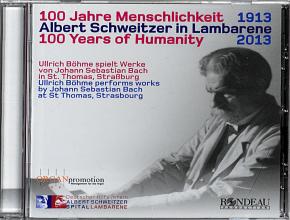 9 | 100 Jahre Menschlichkeit 1913-2013, Albert Schweitzer in LambareneUlrich Böhme spielt Werke von Johann Sebastian Bach in St. Thomas, Straßburg | Bach, Johann Sebastian | Böhme, Ullrich | 2013 | 72' 25'' | M001-M030-D001-A009 | |