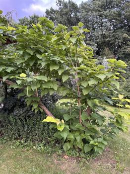 | 717 | Catalpa ovataKleinblütiger Trompetenbaum | Lamiales (Lippenblütlerartige) | Bignoniaceae (Trompetenbaumgewächse) | Catalpa | |||