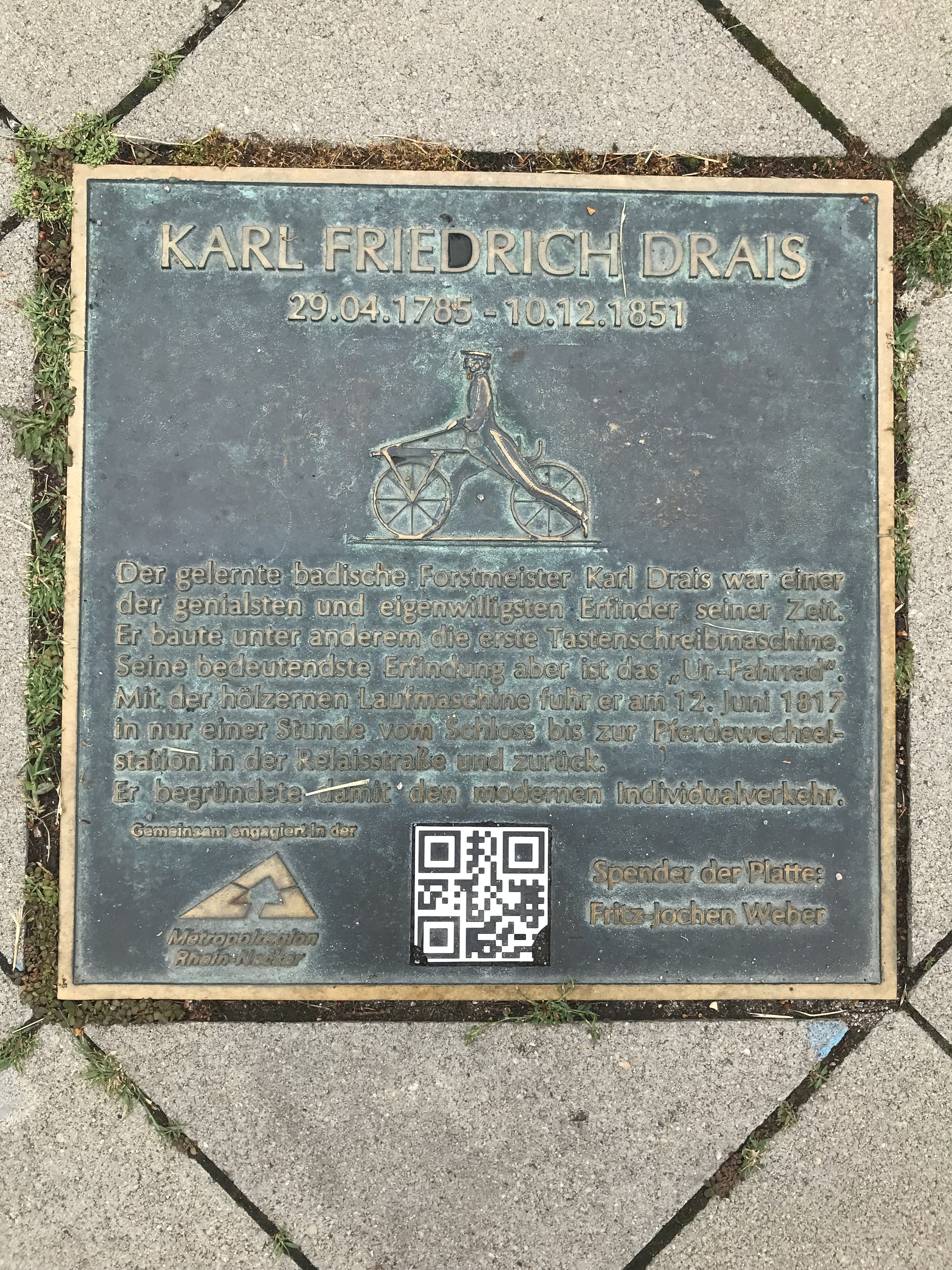 Galerien für Karl Friedrich Drais (1785-1851) (Bronzeplatte) (Mannheim)