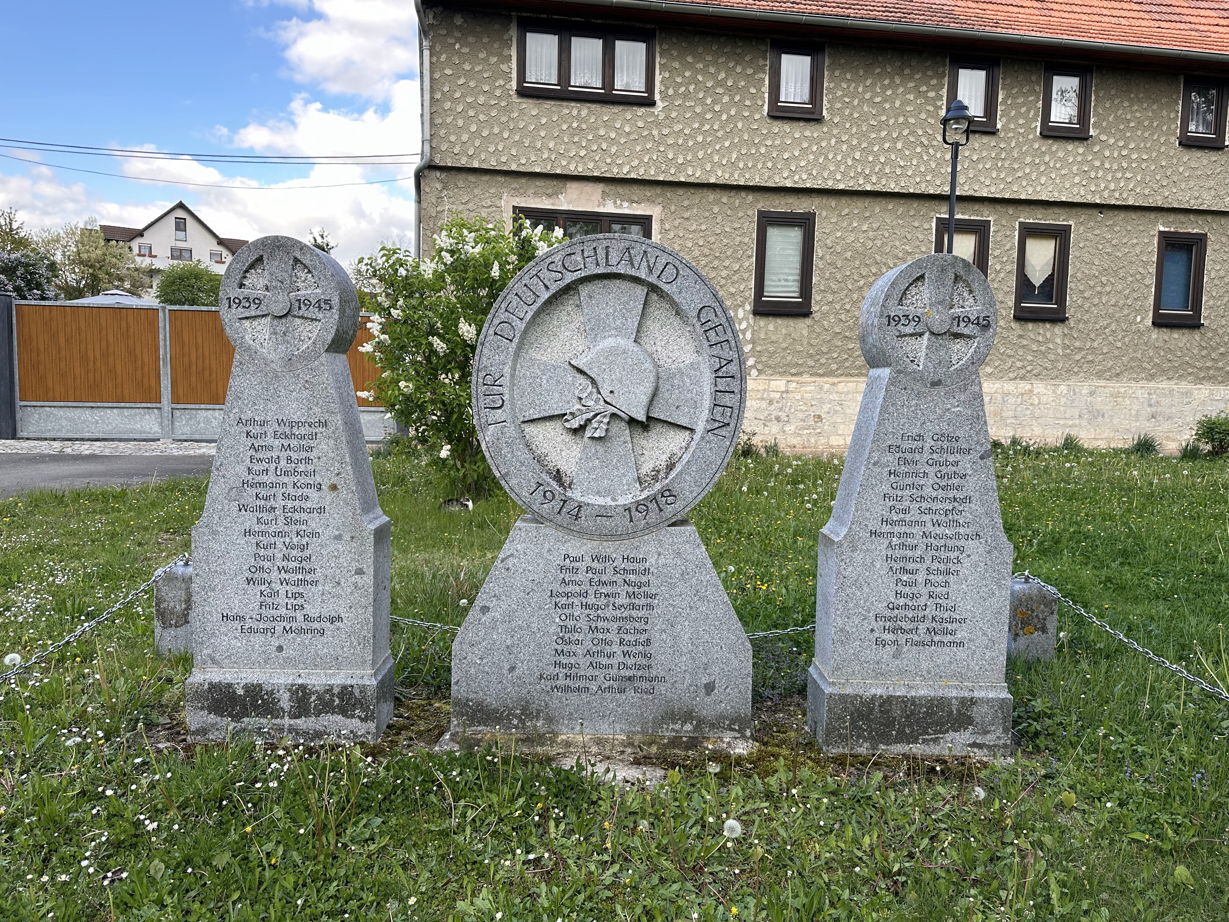 Das Kriegsgräberdenkmal in Eischleben, Thüringen, ist eine Gedenkstätte, die den Gefallenen der Weltkriege gewidmet ist. Es befindet sich in zentraler Lage im Ort und dient dazu, die Erinnerung an die Einwohner von Eischleben, die in den Konflikten ihr Leben verloren haben, aufrechtzuerhalten.