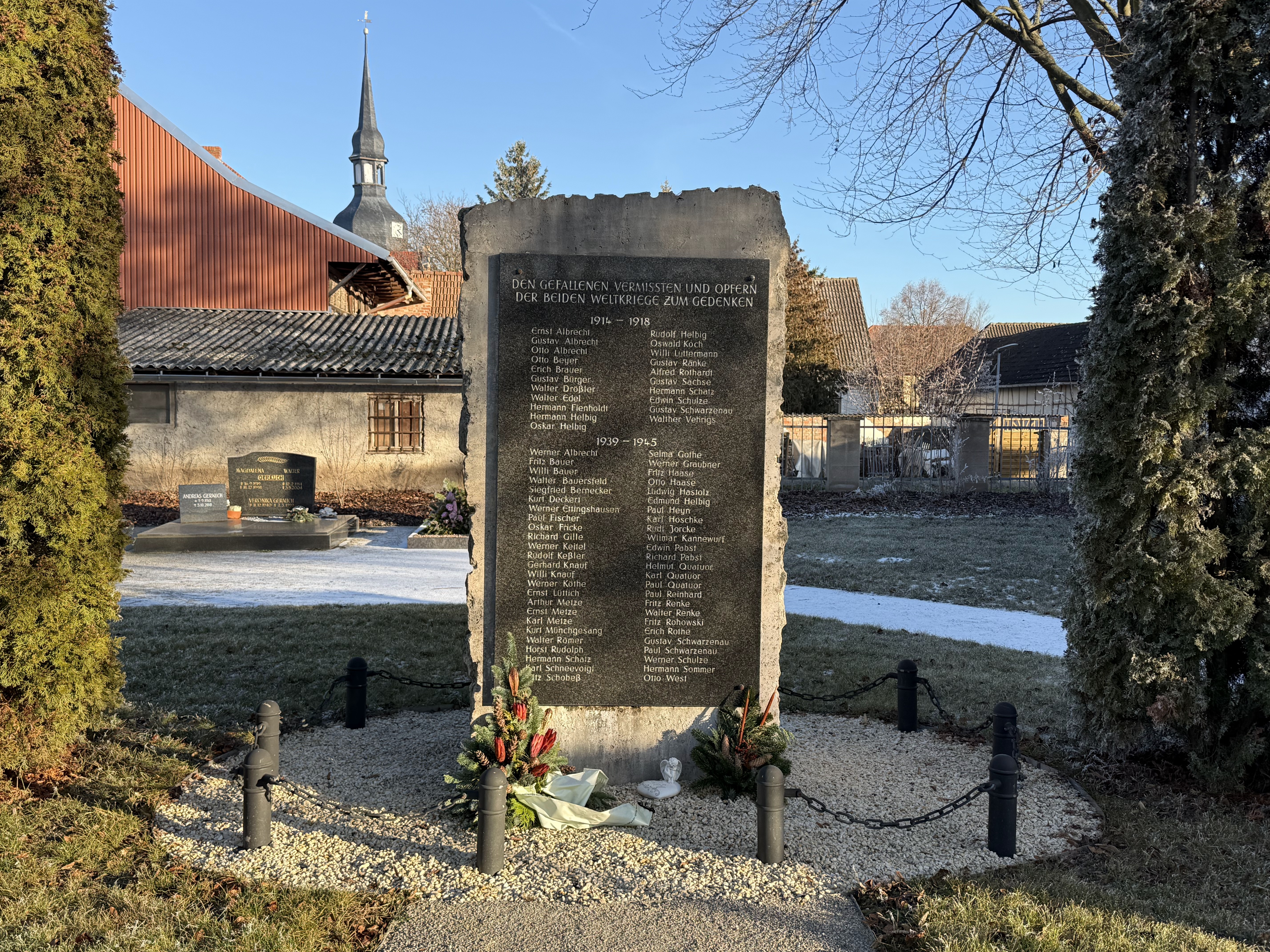 Kriegerdenkmal (Wundersleben/Straußfurt (VG)) Signatur: A1M1-D001-K005-K001-Z002-000541 In die Zwischenablage kopiert Kurz & Kompakt Raum-Nr. A1M1-D001-K005-K001-Z002 Index 000541 Weitere Objekte (12) Kriegerdenkmal (Linderbach/Erfurt) Kriegerdenkmal (Azmannsdorf/Erfurt) Kriegerdenkmal (Udestedt/Gramme-Vippach) Kriegerdenkmal (Daasdorf am Berge) Kriegerdenkmal (Markvippach/Gramme-Vippach) Kriegerdenkmal (Bechstedt-Wagd/Grammetal) Kriegerdenkmal (Eischleben/Amt Wachsenburg) Kriegerdenkmal (Kirchheim/Amt Wachsenburg) Kriegerdenkmal (Rittersdorf/Kranichfeld) Kriegerdenkmal (Treppendorf/Rudolstadt) Kriegerdenkmal (Bösleben/Riechheimer Berg) Kriegerdenkmal (Dosdorf/Arnstadt)